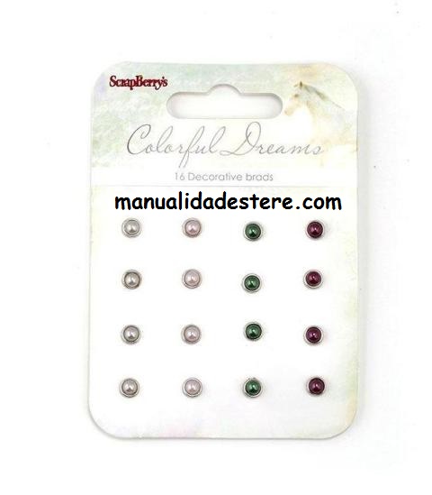 Kit de 16 brads ScrapBooking de la marca ScrapBerrys.