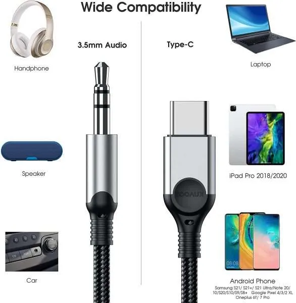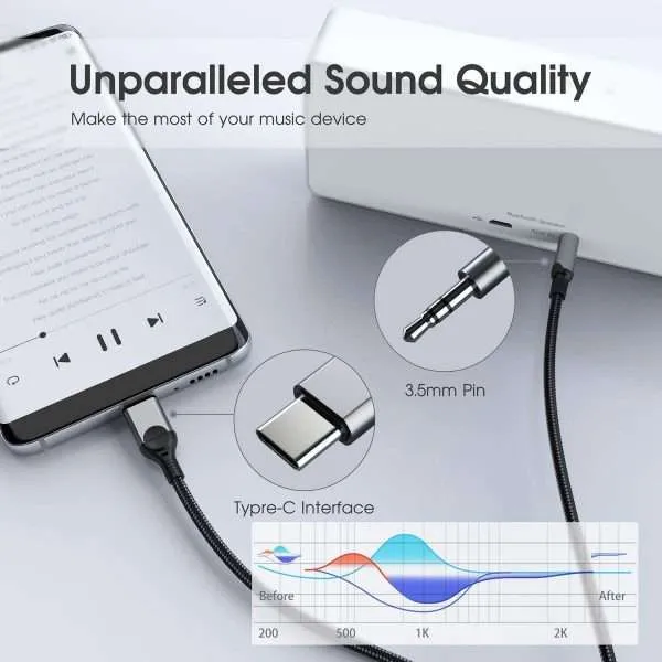 Tome este cable auxiliar USB C con sus auriculares, luego podrá disfrutar de la música con calidad de sonido sin pérdidas en una cafetería, en un jardín, corriendo o donde quiera que vaya. Deja que la música te sane, el mundo es todo tuyo.