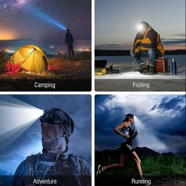 Interfaz micro USB y faro ajustable: Lo que significa que puedes cargar la linterna en cualquier lugar y se puede utilizar como un banco de energía de emergencia. El ángulo de visión de la luz es ajustable con 90°, por lo que no estarás cansado cuando lo uses con esta lámpara principal.