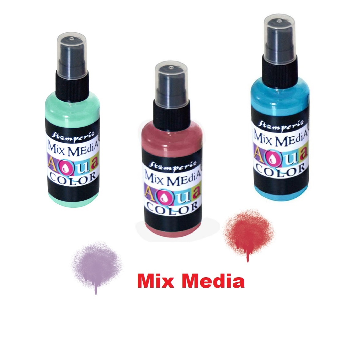 La tinta Mix Medida viene comercializada en un frasco con un cómodo y eficaz pulverizador, para poderlo aplicar directamente, y crear tus efectos de Mix Media.